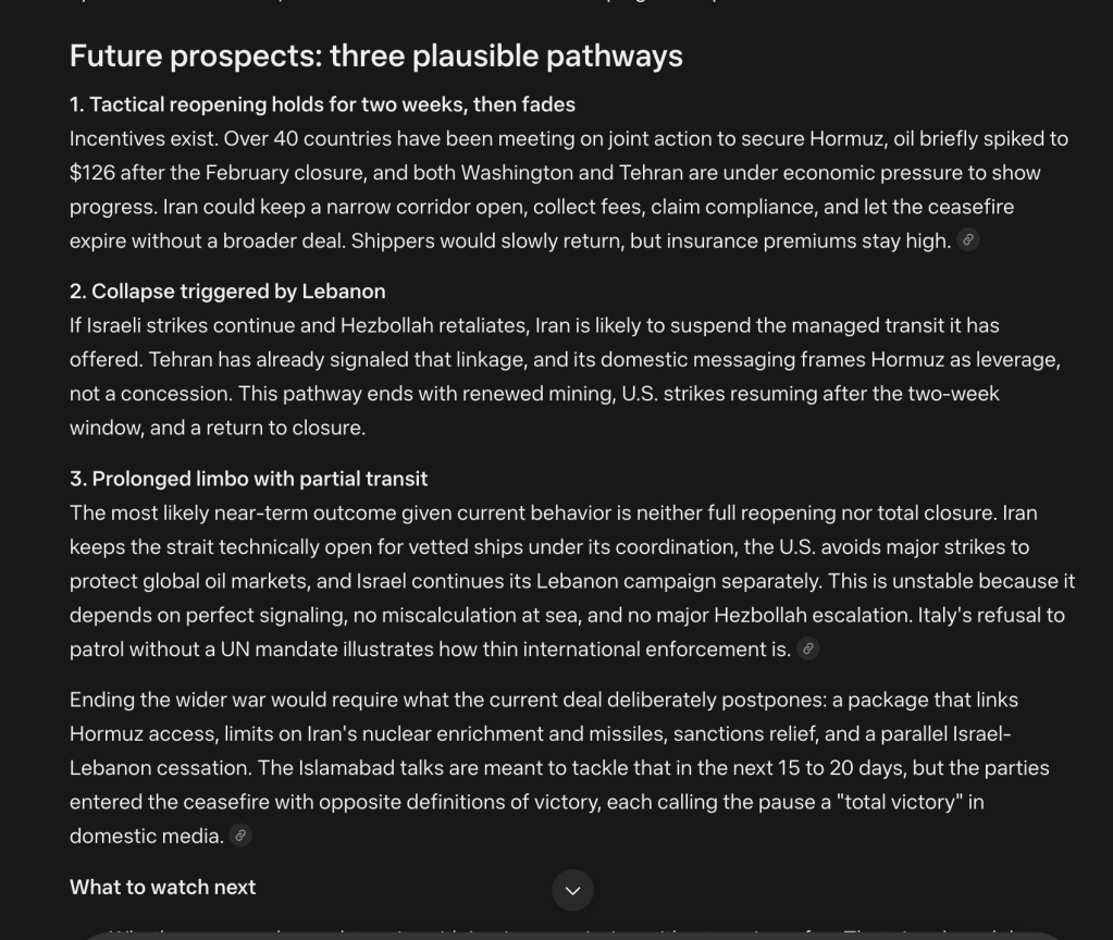 Meta gave a solid analysis. It concludes that reopening the strait will be gradual. Expect a few ships to trickle through at first, rather than a full reopening.