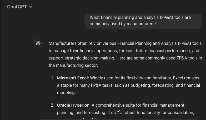 Llama 3.1 gave almost the exact same response. It mentioned many of the same tools like Oracle and SAP, along with Excel.
