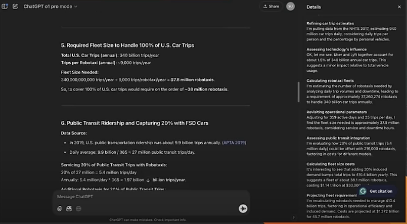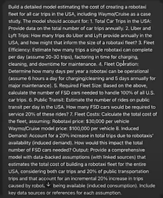 Jason did not make it easy on OpenAI. He asked for a detailed model on what it would cost to build a robotaxi fleet to replace all car trips.