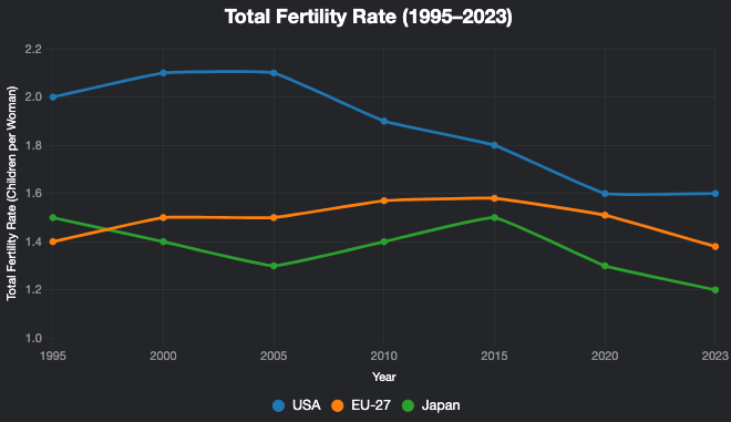 One of the big reasons America is outpacing Europe and Japan economically is our growing population. We have higher fertility than most of Europe. Meanwhile, Japan’s population is in outright decline.