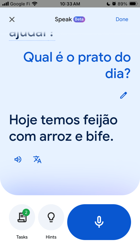 Google had me ask about the specials of the day and order a beef and rice dish. Portuguese food is so good – I wish I could actually eat it!