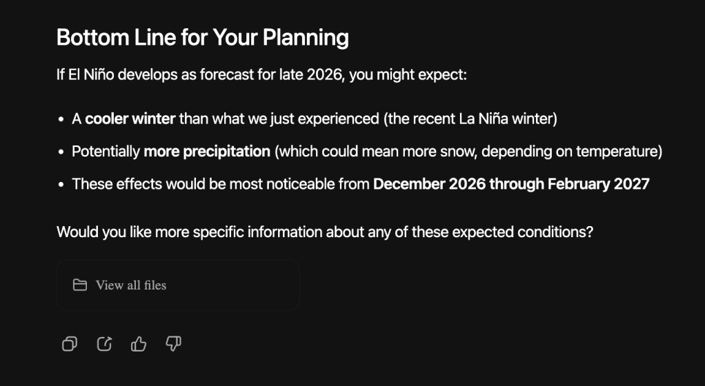 Grok confirms that El Nino actually results in warmer weather, as does Gemini. Whew!