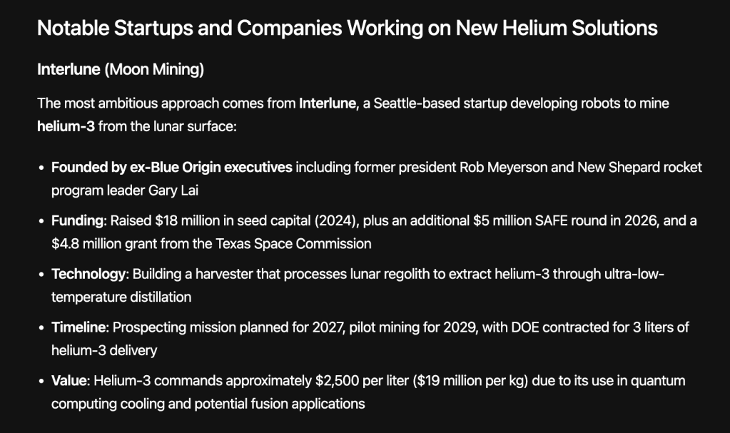 But there are awesome startups working to fix the problem. One of the most exciting is Interlune, which is trying to mine helium on the moon.