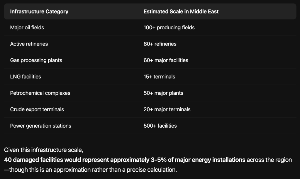 This morning on Bloomberg, I heard that 40 energy sites have been destroyed in the Iran war. How big of an impact will that have?