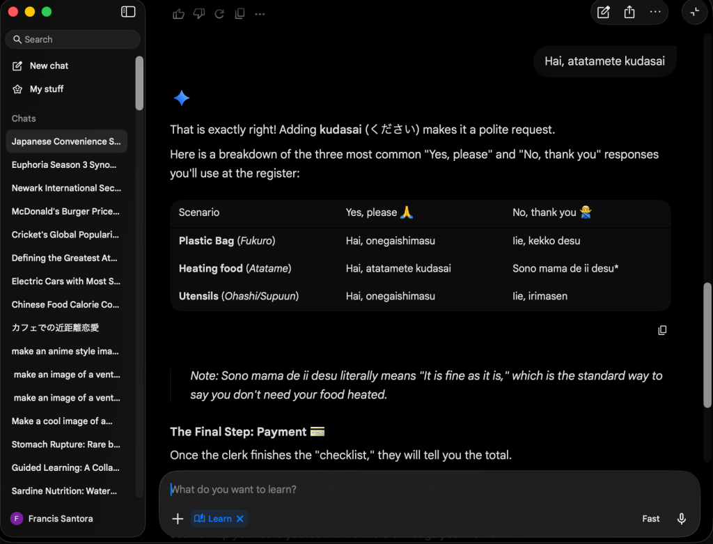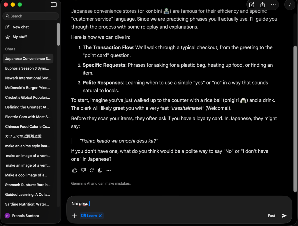 I tested Guided Learning this morning, having it prep me for my Japan trip this week. It gave me useful, realistic practice that will help me a lot during my visit!